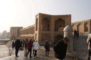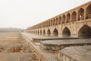 رودخانه خالی از آب زاینده رود در ابتدای پل تاریخی خواجو