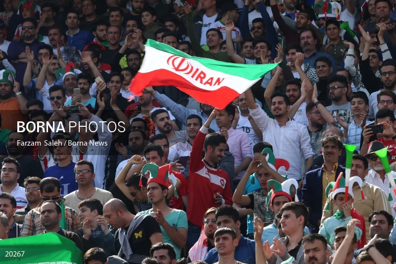 سه شنبه 8 فروردین 1396 ، ایران ، تهرانهواداران تیم ملی فوتبال ایران در بازی مقابل چین، با تکان دادن پرچم ایران تیم ملی را تشویق میکنند. تیم های ملی فوتبال ایران و چین در دور برگشت مقدماتی جام جهانی ۲۰۱۸ روسیه در ورزشگاه آزادی با قضاوت محمد تاکی از سنگاپور به مصاف هم رفتند و ایران موفق شد در این بازی با نتیجه 1 بر 0 پیروز شود. تک گل ایران در این بازی را مهدی طارمی در دقیقه ۴۶ به ثمر رساند.