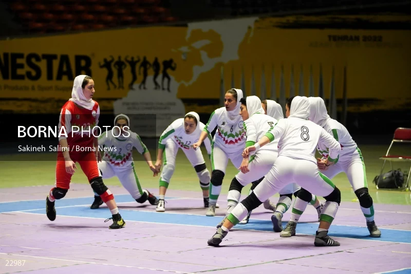 ورزشکاران در مسابقات کبدی نخستین دوره رقابت‌های بین‌المللی نوروز بانوان با هم رقابت می‌کنند.