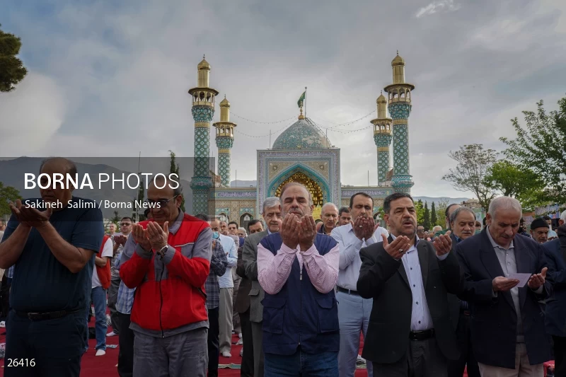ایرانیان نماز عید سعید فطر را در امام‌زاده پنج‌تن لویزان در تهران اقامه می‌کنند.