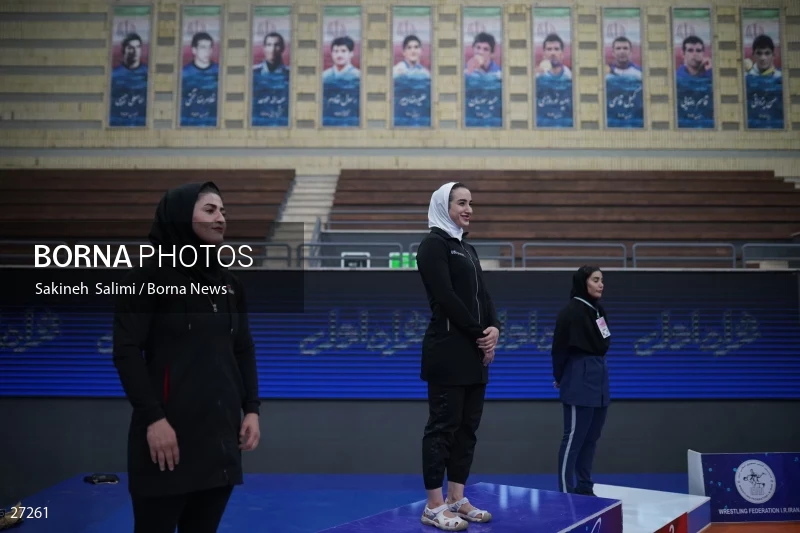 کشتی‌گیران زن آلیش در جریان مسابقات قهرمانی کشور و انتخابی تیم ملی کشتی آلیش زنان در سالن شهدای هفتم تیر تهران مدال‌های خود را دریافت می‌کنند.