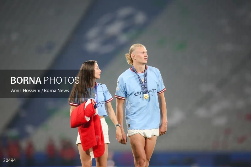 شنبه 20 خرداد 1402 ، ترکیه ، استانبولارلینگ هالند پس از پیروزی مقابل اینترمیلان در در فینال لیگ قهرمانان اروپا در استادیوم آتاتورک المپیک استانبول خوشحالی میکند.