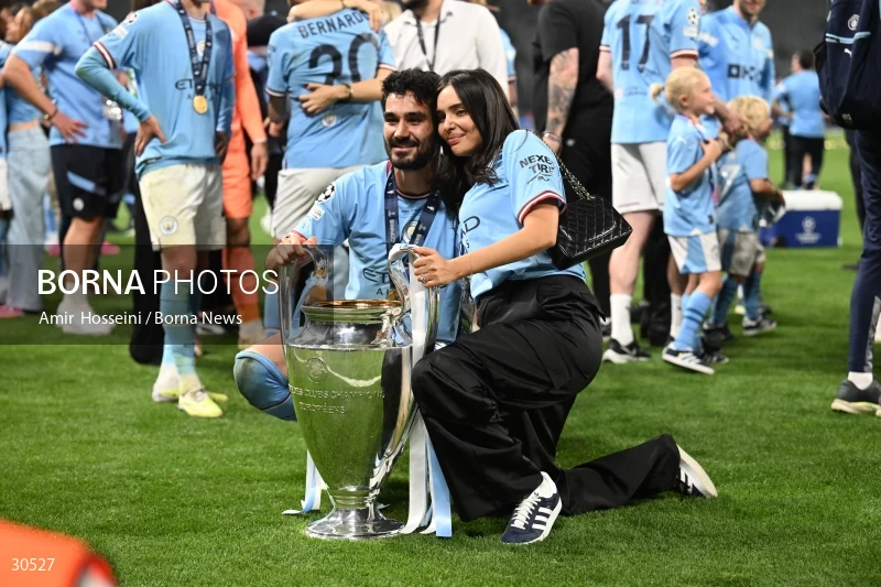 جمعه 19 خرداد 1402 ، ترکیه ، استانبولایلکای گوندوغان بازیکن تیم منچستر سیتی پس از پیروزی مقابل اینترمیلان در در فینال لیگ قهرمانان اروپا در استادیوم آتاتورک المپیک استانبول خوشحالی میکند.