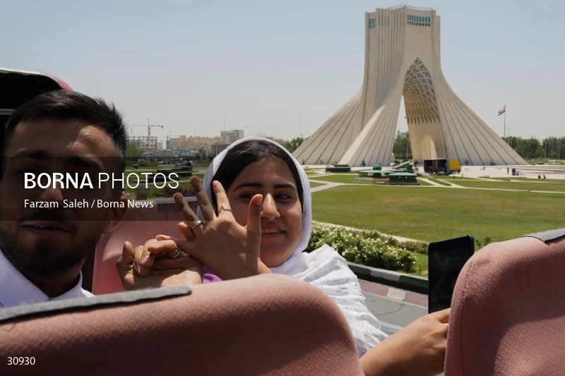 ۱۴ زوج ترکمن مراسم ازدواج خود را با گردشگری و بازدید از بناهای تاریخی تهران برگزار کردند.