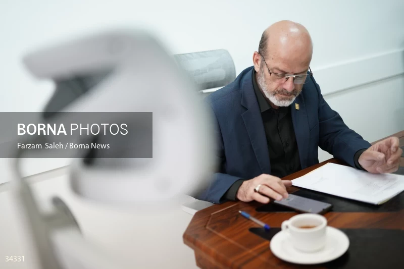 حسن مسلمی نائینی رییس جهاد دانشگاهی در جربان مصاحبه با خبرگزاری برنا دیده می‌شود.