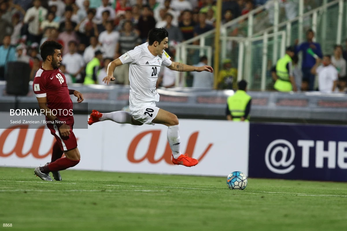 پنج شنبه 11 شهریور 1395 ، ایران ، تهرانسردار آزمون در جریان دیدار تیم ملی فوتبال ایران مقابل قطر در مقدماتی جام جهانی 2018 در استادیوم آزادی تهران توپ را کنترل میکند.